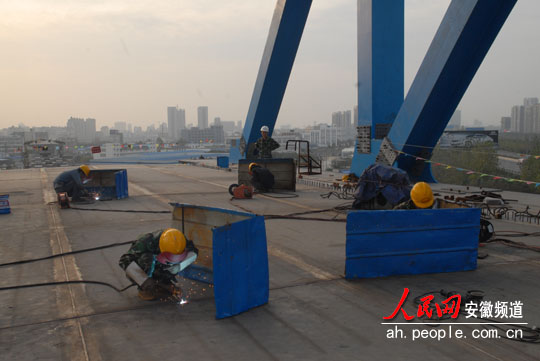 曹方勇和王俊是老乡,与王俊同时来到南环线项目,现在是桥面焊接组组长。“南环线经济开发区特大桥是国内第一座复合钢板桥,建成后将成为令人瞩目的合肥新地标。”一说到自己所参与的项目,曹方勇就感到出无比的自豪。